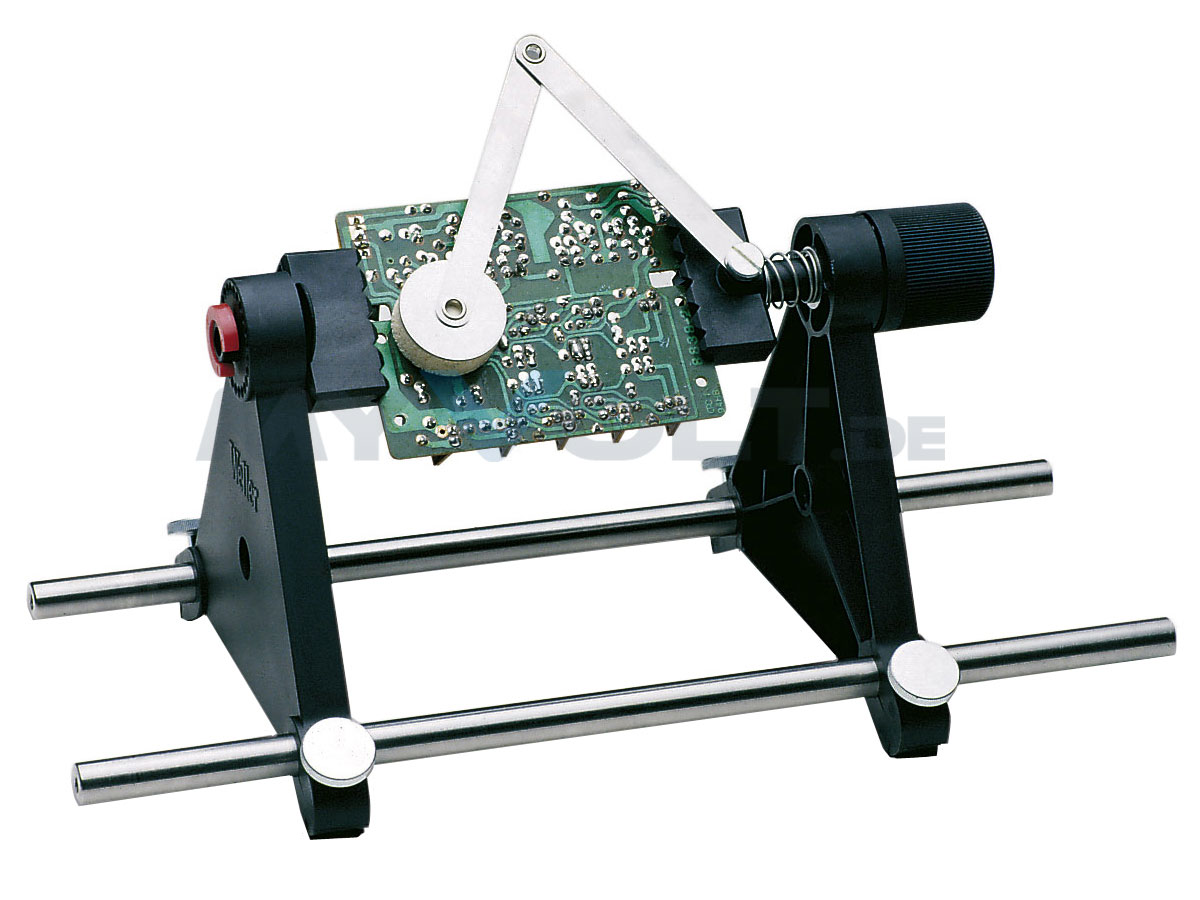 Stabiler Bestückungsrahmen mit einer maximalen Aufspannfläche von 140x 190mm. Die eingespannte Leiterplatte ist um 360° drehbar und kann über 2 Stellschrauben stufenlos fixiert werden. Die montierten Gummifüße sorgen für einen rutschfesten Stand.