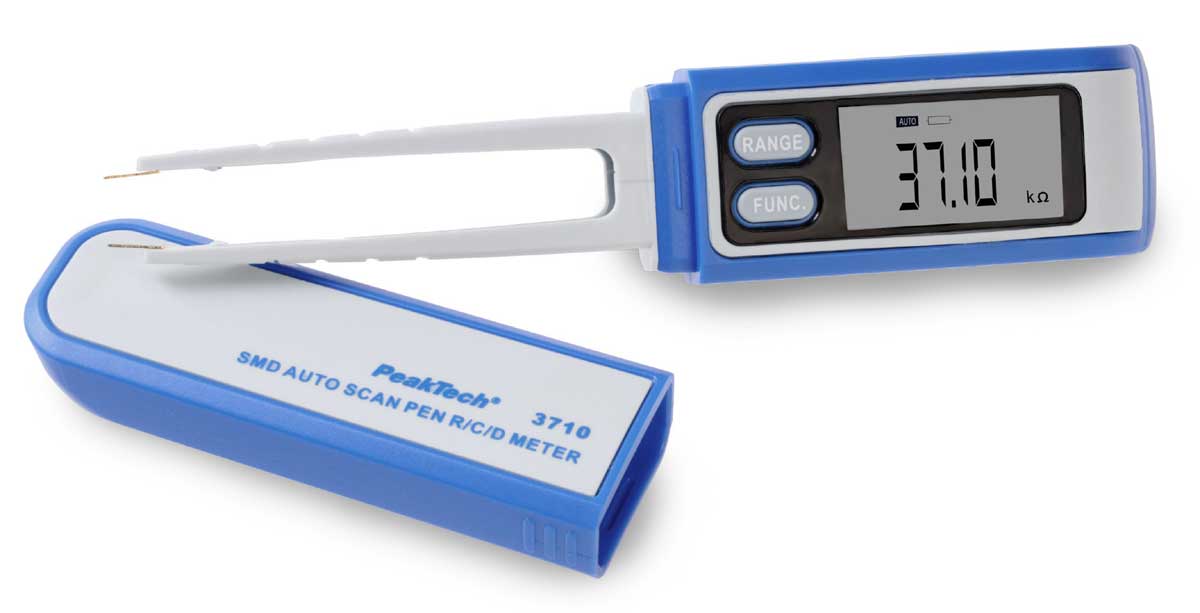Der Versuch mit einem herkömmliche Multimeter Messungen an kleinen Bauteilen aus dem SMD-Bereich durchzuführen, erweist sich regelmäßig als sehr schwierig. Mit dem PeakTech P-3710 können Sie SMD Bauteile wie mit einer Pinzette greifen und gleichzeitig eine Messung durchführen.