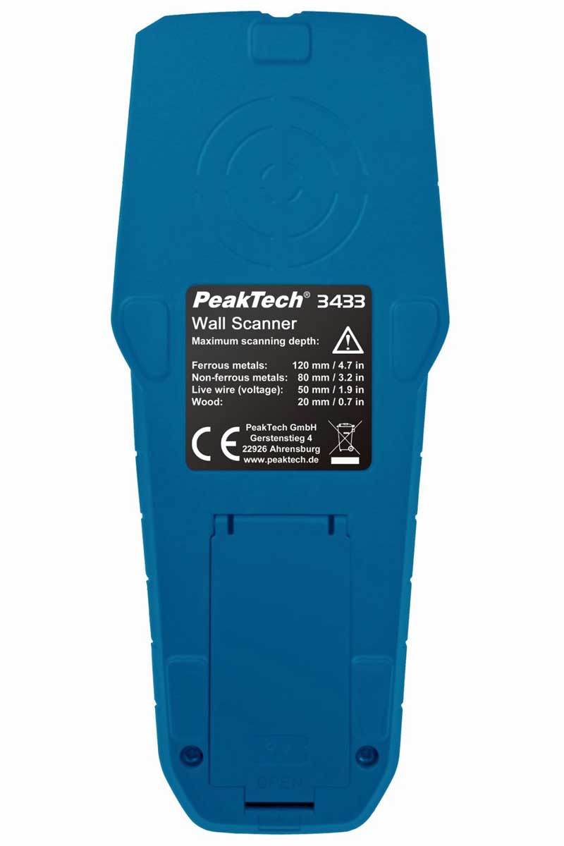Technische Daten (Digitaler Wandscanner für Metall, Leitungen und Holz Detektor PeakTech 3433)