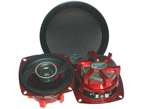 Die schlagen ein - Einbaulautsprecher der Serie Meteor von MEGAKICK. Nicht nur technisch, sondern auch optisch bietet dieses Mehrwegsystem ein absolutes Highlight. Die Polypropylen-Membran und der Korb sind in schimmerndem rubinrot-metallic gehalten. Die groß dimensionierten Magneten werden von einer SixWing-Einfassung im Turbinenlook eingebettet. Die separat aufgehängten Hochtöner ermöglichen eine druckvolle Basswiedergabe und hohe mechanische Stabilität. Dieses Hammer-Mehrwegsystem wird anschlussfertig mit Metallgitterabdeckung, Anschlusskabel und Befestigungsmaterial ausgeliefert. 2-Wege System (100 mm)