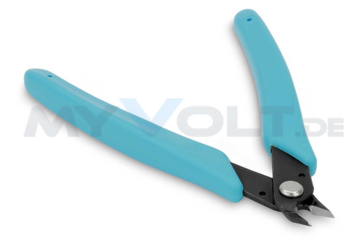 Der Micro-Seitenschneider aus hartem Kohlenstoffstahl eignet sich für feinste Schneidarbeiten in den Bereichen der Elektronik, Feinmechanik, Nachrichtentechnik sowie im Modellbau oder anderen Hobby- und Bastelarbeiten. Der Elektronikschneider besitzt eine leicht abgewinkelte Schneide und lässt sich aufgrund der ergonomischen Form und des geringen Gewichtes angenehm und ermüdungsfrei bedienen.