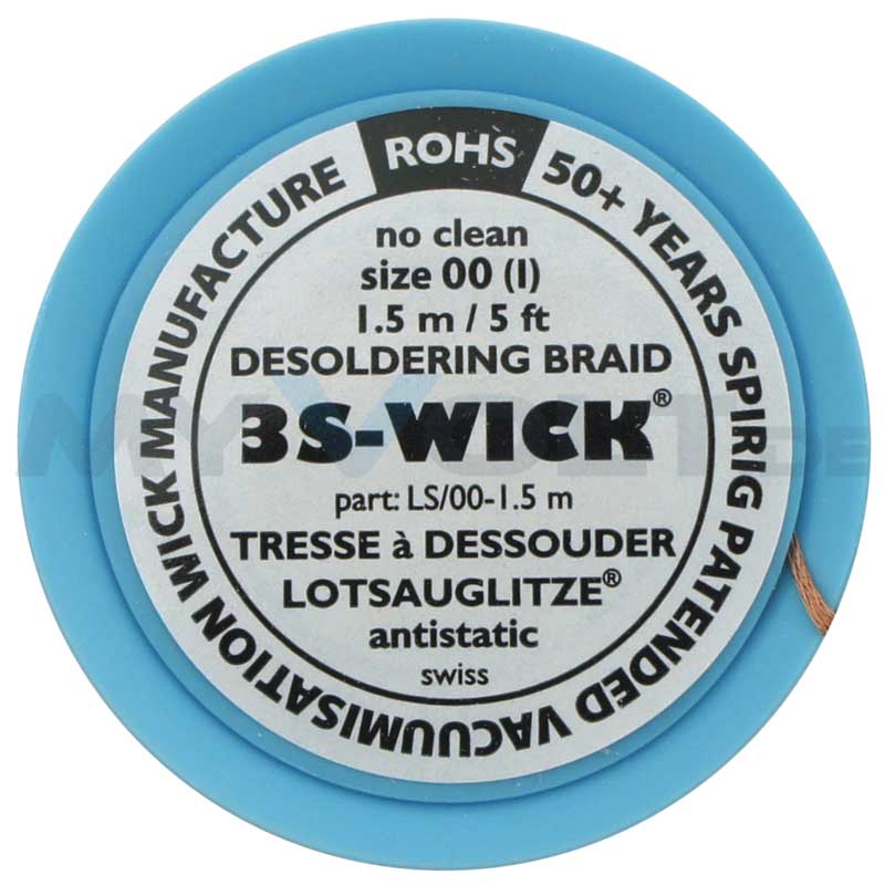 zur sauberen und schonenden Aufnahme von Lötzinn bei Entlötarbeiten. Diese Entlöt-Litze zeichnet sich durch eine hohe Saugkraft aus und ist mit NO-Clean Flussmittel getränkt. Die Entlöt-Litze ist in folgenden Breiten erhältlich und wird in einer praktischen Spenderbox geliefert.L05 0,5mm breit (SMD) orange ESD 0,8mm breit (SMD) Antistatikspule weißL10 1,0mm breit (extra-fein) gelb L15 1,5mm breit (fein) grün ESD 1,5mm breit (fein) Antistatikspule gelbL20 2,0mm breit (mittel) rot ESD 2,2mm breit (mittel) Antistatikspule grünL25 2,5mm breit (grob) blauESD 2,7mm breit (grob) Antistatikspule blau