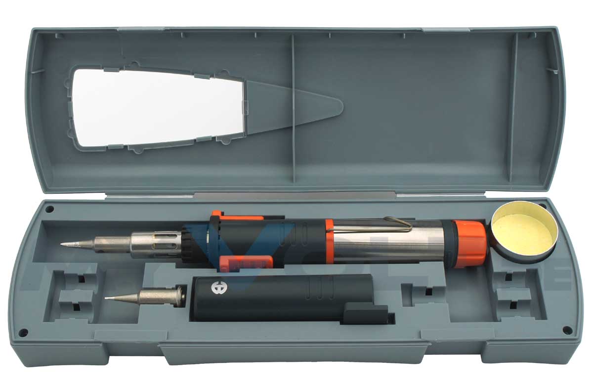 Betrieben wird der handliche Gaslötkolben mit Butan-Feuerzeuggas. Mit einer Gasfüllung kann eine Betriebszeit von ca. 60 min. erreicht werden.