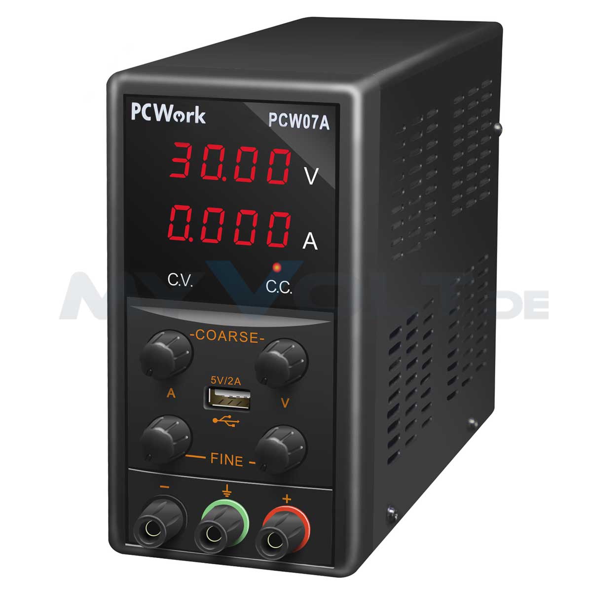 Das Schaltnetzgerät PCWork PCW07A eignet sich hervorragend für Anwendungen im Entwicklungs-, Service und Ausbildungsbereich. Die gute Ablesbarkeit der roten LED-Anzeige, die leichte Bedienbarkeit, das geringe Eigengewicht sowie die schmale Bauform zeichnen das PCW07A aus.