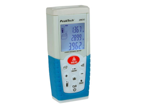 Dieses professionelle Laser-Entfernungsmessgerät PeakTech P-2800 mit LCD-Anzeige und Hintergrundbeleuchtung wurde speziell für Messungen von hoher Genauigkeit entwickelt und ist für Messungen entfernter und schwer zu erreichender Orte konzipiert. Dieses kompakte und handliche Modell PeakTech P-2800 wurde speziell für Anwendungen in Innenräumen entwickelt. Schnelltasten für Addition, Subtraktion, Pythagoras sowie Flächen- und Volumenberechnung ermöglichen schnelle und sehr zuverlässige Messungen. Die letzten 20 erfassten Messwerte werden automatisch gespeichert.