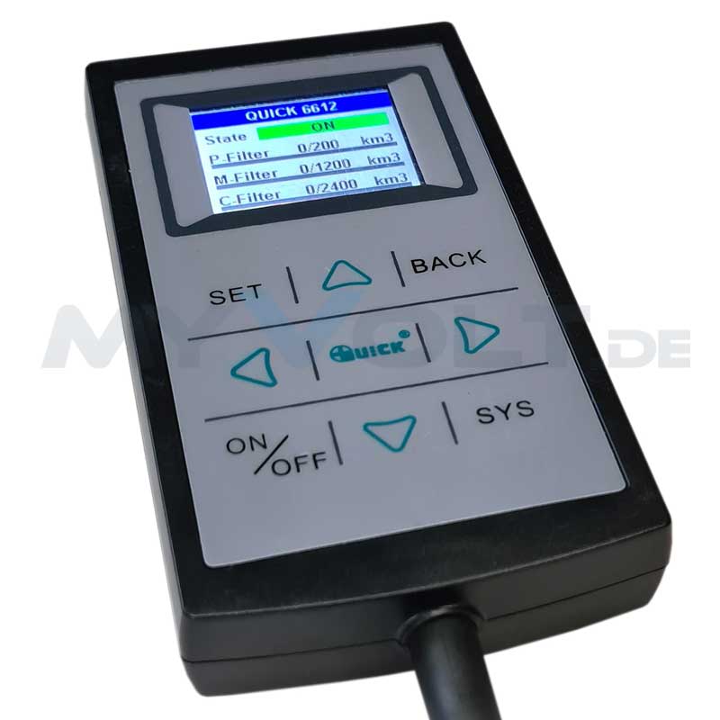 Das kompakte Absauggerät Quick QU6102A2 mit integriertem Filtersystem ist sehr flexibel einsetzbar. Das Filtersystem kann direkt neben dem Arbeitsplatz platziert werden und kann als 1 oder 2 Platz-Anlage eingesetzt werden. Die Lötrauchabsaugung bietet eine besonders große Filterfläche für lange Standzeiten sowie 3 separat wechselbarer Filterstufen. Für die Bedienung steht eine kabelgebunden Kontroll- und Steuereinheit mit farbigem Display zur Verfügung. Mit dieser Fernbedienung können die Parameter des Absaugsystems wie Luftfördermenge und max. Luftfiltervolumen individuell eingestellt werden. Bei längeren Arbeitspausen ist es möglich die Lötrauchabsaugung über die Fernbedienung in einen Standby-Modus zu versetzen. Ist die Lötrauchabsaugung aktiviert werden auf dem Display die aktuellen Betriebszustände des Filtersystems angezeigt.