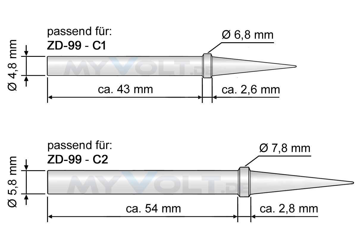Herstellerinformationen (Lötspitze 2,2mm (meißelförmig) für ZD99 (48 Watt / 58 Watt))