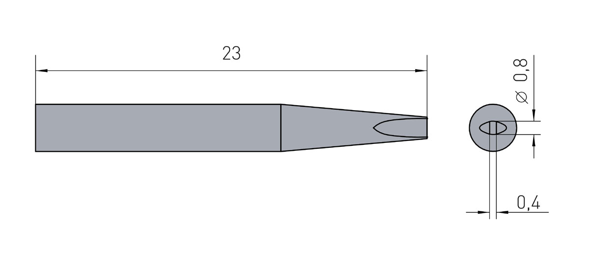 Technische Daten (Lötspitze Weller RTM-008-S / RT9 0,8x 0,4mm (meißelförmig) RT-9 - 40 Watt)