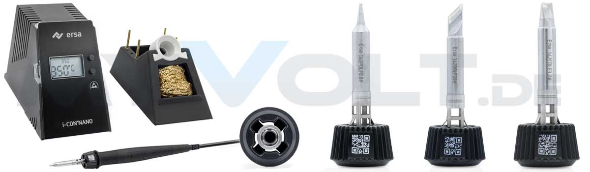 Die Lötstation Ersa i-CON NANO wird mit dem Lötkolben i-TOOL NANO und der Lötspitze 102CDLF16 ausgeliefert. Für dieses Werkzeug können Sie alle Lötspitzen der Serie 102 verwenden. Ersa bietet eine große Auswahl an Lötspitzenformen und Größen an. Die Lötspitzen der Serie 102 sind in den Formen konisch (bleistiftspitz), meißelförmig, abgeschrägt, Hohlkehle (Lotdepot) und Messer erhältlich. Bei der Auswahl der richtigen Lötspitze sollten sie darauf achten, dass die Lötspitze ungefähr so groß wie die zu bearbeitende Lötstelle ist. Für die Ersa i-CON NANO gibt es Lötspitzen in den Größen: Ø 0,2 mm / Ø 0,3 mm / Ø 0,4 mm / Ø 0,6 mm / Ø 0,7 mm / Ø 0,8 mm / Ø 1,0 mm / 1,2 mm / 1,6 mm / 2,0 mm / 2,4 mm / 3,2 mm / 5,0 mm usw.