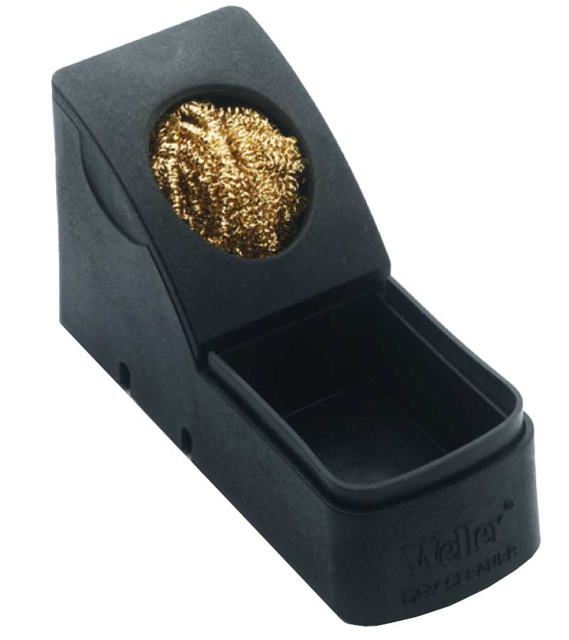 Speziell bei der Verwendung von bleifreien Loten kann es zu einer verstärkten Oxidbildung auf der Oberfläche der Lötspitze kommen. Diese Oxide müssen gezielt entfernt werden, da sie sehr schnell zu einer schwarzen unbenetzbaren Trennschicht führen. Für die Reinigung der Lötspitze im Weller WDC Dry Cleaner kommt eine spezielle Spiralwolle zum Einsatz. Zur Grobreinigung wird das verunreinigte Altlot an einer Softkante in das Auffanggefäß geklopft. Die Feinreinigung erfolgt anschließend durch Abstreifen oder Drehen der Lötspitze in der Spiralwolle. Nach der Feinreinigung ist weiterhin eine dünne Restlotschicht vorhanden, welche eine sofortige Oxidation der Lötspitze verhindert.