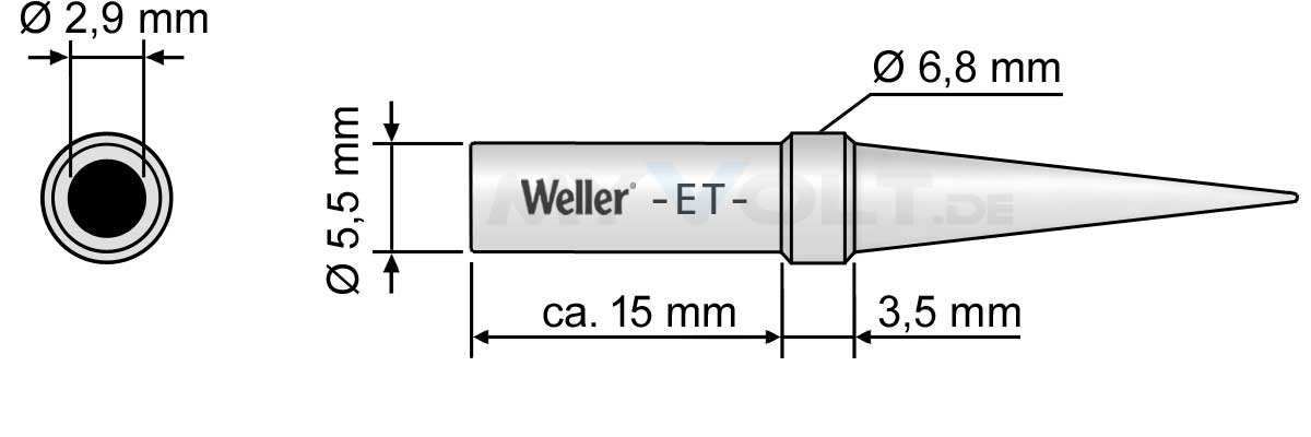 Lötspitze Weller ET-S 0,4mm (bleistiftspitz). Diese Lötspitze ist passend für folgende Werkzeuge:LR-20 / LR-21 ( mit passender Spitzenhülse ), WEP-70 und FE-50