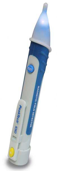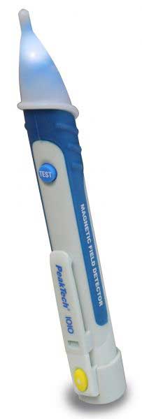 Der Magnetfeldprüfer PeakTech P-1010 eignet sich ideal für die Überprüfung von magnetischen Feldern, sowie der korrekten Funktionsprüfung von Spulen, wie z.B. bei Relais und Magnet-Ventilen. Der Magnetfeld-Detektor PeakTech P-1010 funktioniert berührungslos, so dass ein Öffnen des Gehäuses nicht erforderlich ist. Bei Erkennung eines Magnetfeldes leuchtet die Prüfspitze dauerhaft blau auf.