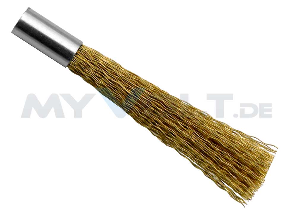 Dieser 4mm Messingpinsel eignet sich zum Entfernen von Rost und Oxidationsrückständen sowie zum Radieren, Polieren, Mattieren, Aufrauen und Entgraten von Metallen und anderen Werkstoffen. Der Messingpinsel radiert, reinigt Kontakte und entfernt Rückstände aller Art.