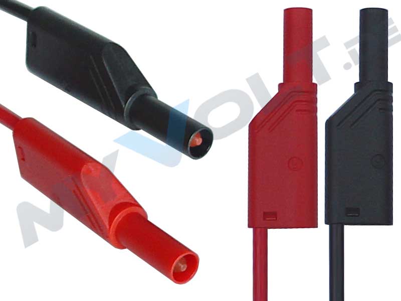 Berührungssichere Messleitung nach IEC 61010, beidseitig 4mm Federkorbstecker mit Schutzkappe sowie axiale 4mm Buchsen für Turmsteckbauweise (Aufstecken weiterer Büschelstecker). Hochflexible, doppelt isolierte Litzenleitung. Griffhülse und Leitung sind trittfest. Die doppelte Isolierung dient auch als Farbindikator zur Erkennung von Schäden an der Isolation.