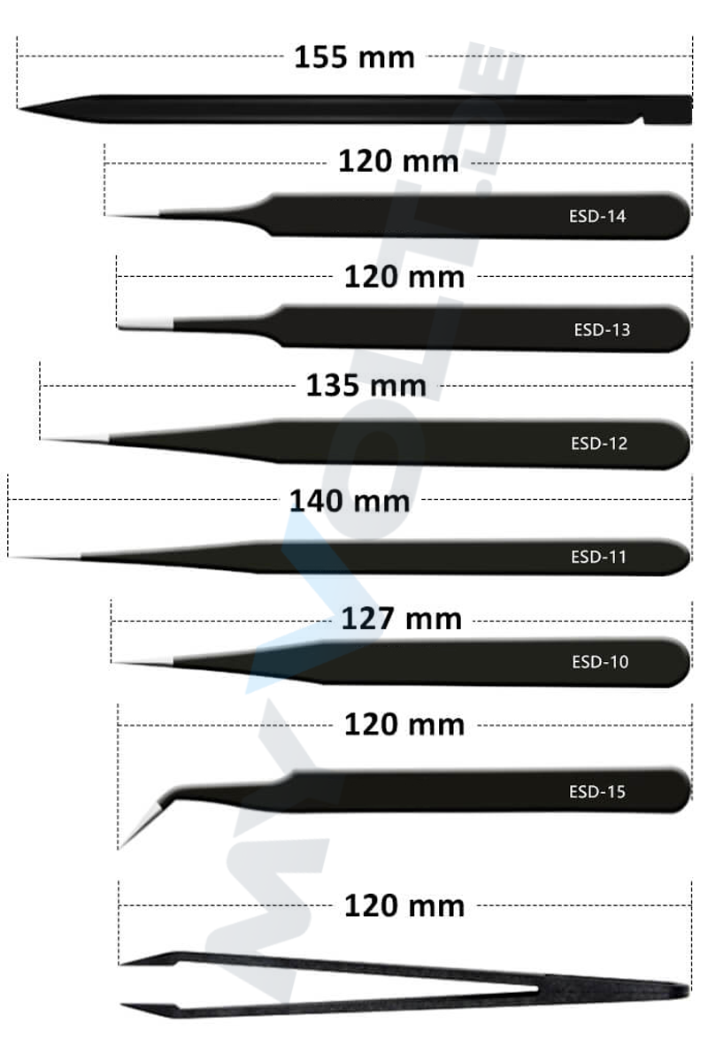 Pinzette ESD-10 - Feine Spitze, gerade (127mm)Pinzette ESD-11 - Feine Spitze, gerade (140mm)Pinzette ESD-12 - Feine Spitze, gerade (135mm)Pinzette ESD-13 - Abgerundete Spatenspitze, gerade (120mm)Pinzette ESD-14 - Superfeine Spitze, gerade (120mm)Pinzette ESD-15 - Feine Spitze, 45° gebogen (120mm)Pinzette ESD-16 - Feine Spitze, gerade (127mm)Pinzette ESD-17 - Feine Spitze, 30° gebogen (122mm)Pinzette ESD34A-sa - Flachkopf, gerade (120mm)