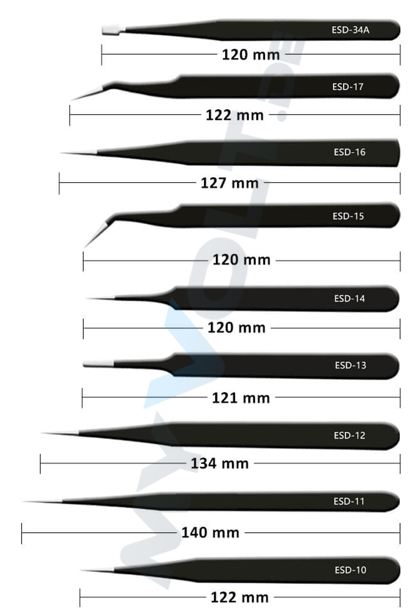 Pinzette ESD-10 - Feine Spitze, gerade (127mm)Pinzette ESD-11 - Feine Spitze, gerade (140mm)Pinzette ESD-12 - Feine Spitze, gerade (135mm)Pinzette ESD-13 - Abgerundete Spatenspitze, gerade (120mm)Pinzette ESD-14 - Superfeine Spitze, gerade (120mm)Pinzette ESD-15 - Feine Spitze, 45° gebogen (120mm)Pinzette ESD-16 - Feine Spitze, gerade (127mm)Pinzette ESD-17 - Feine Spitze, 30° gebogen (122mm)Pinzette ESD34A-sa - Flachkopf, gerade (120mm)