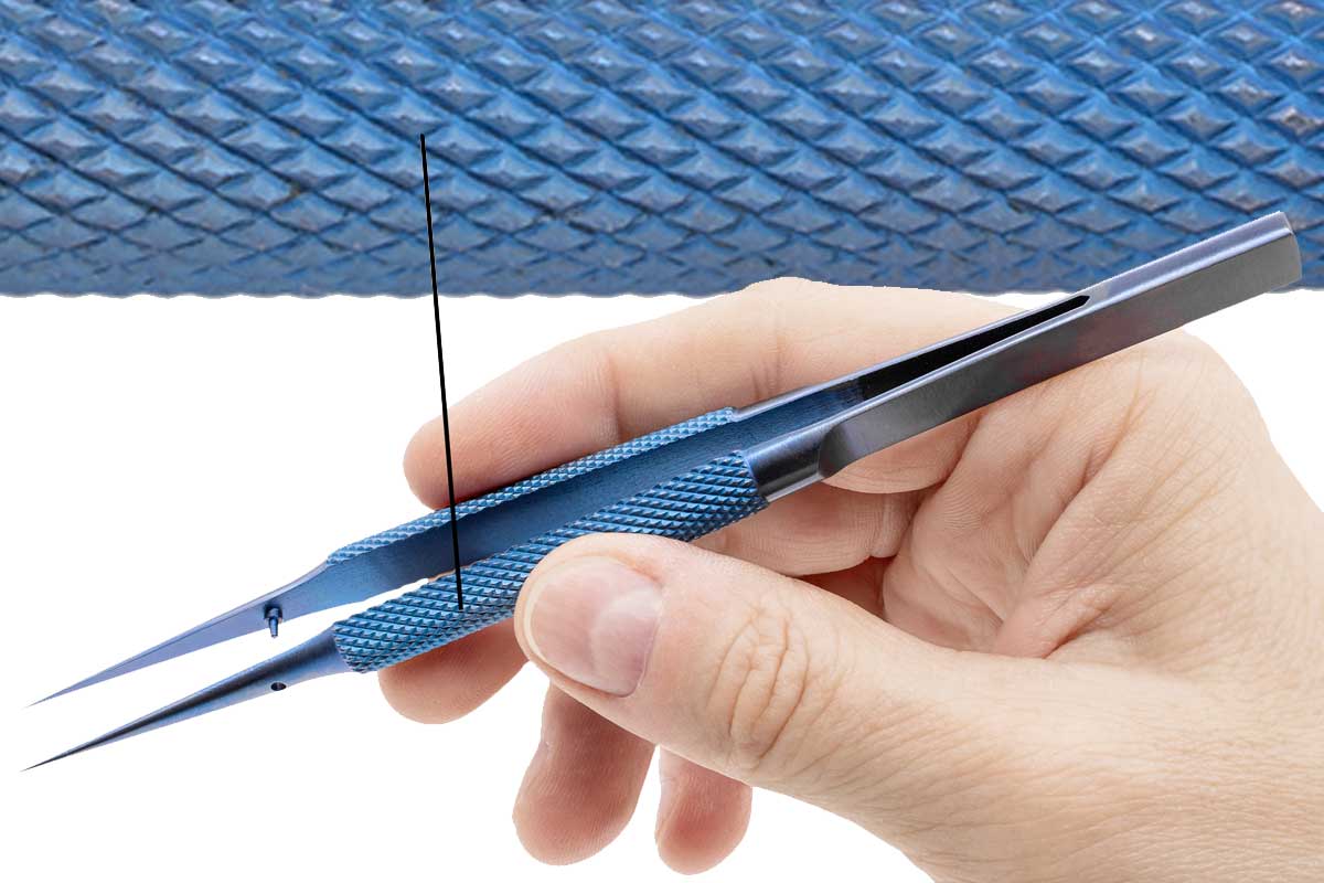 SMD Präzisions-Pinzette aus einer rostfreien und hochtemperaturbeständigen Titanlegierung zum Greifen von kleinsten Bauteilen. Die Anschlagbegrenzung schützt die ultrafeinen Spitzen vor zu hohem Druck und verlängert die Lebensdauer der Pinzette. Der rund ausgearbeitete Griff mit strukturierter Oberfläche sorgt für rutschfestes und präzises Arbeiten. Anwendungsbereiche: Mikroelektronik, Schmuckherstellung, Uhrenindustrie, Medizin- und Labor Technik.