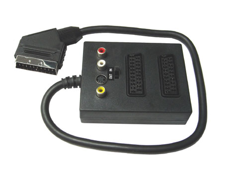 Praktische Scartverteilerbox mit 3 Cinchbuchsen (Audio links/rechts + Video), einem S-VHS Anschluss und 2 Scartbuchsen. Die Verteileranschlussleiste ist vollständig beschalten und kann sowohl als Ein- sowie auch als Ausgang benutzt werden. Die Umschaltung erfolgt über den im Verteiler integrierten Schalter. Ein ideales Gerät für den Anschluss von Videokamera oder anderen S-VHS-Geräten an Geräte, die nur mit einem S-VHS kompatiblen Scartanschluss ausgestattet wurden. Auch bestens geeignet für den Anschluss des Fernsehgerätes an die heimische Stereo-Anlage.