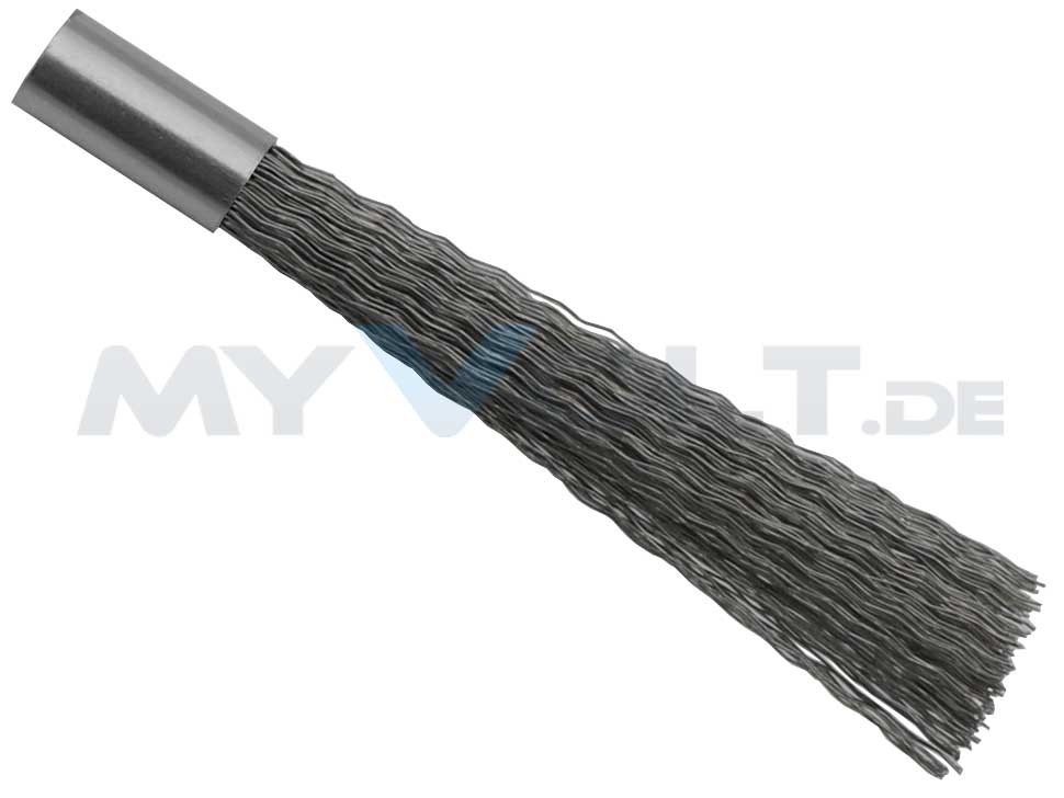 Dieser 4mm Stahlpinsel eignet sich zum Entfernen von Rost und Oxidationsrückständen sowie zum Radieren, Polieren, Mattieren, Aufrauen und Entgraten von Metallen und anderen Werkstoffen. Der Stahlpinsel radiert, reinigt Kontakte und entfernt Rückstände aller Art.