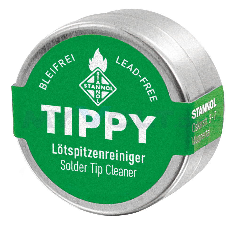 Der Tippy Lötspitzenreiniger von Stannol reinigt und verzinnt verunreinigte (oxidierte) Lötspitzen schnell und leicht in einem Arbeitsgang. Er besteht aus hochwertigem Lotpulver mit aktivierenden Zusätzen. Zur Reinigung mit der Lötspitze über die Oberfläche des Stannol Tippy streichen. Die Lötspitzentemperatur sollte mindestens 220°C und höchstens 450°C betragen. Die Reinigung und Verzinnung verbessert sich, je näher die Spitzentemperatur an 450°C liegt.