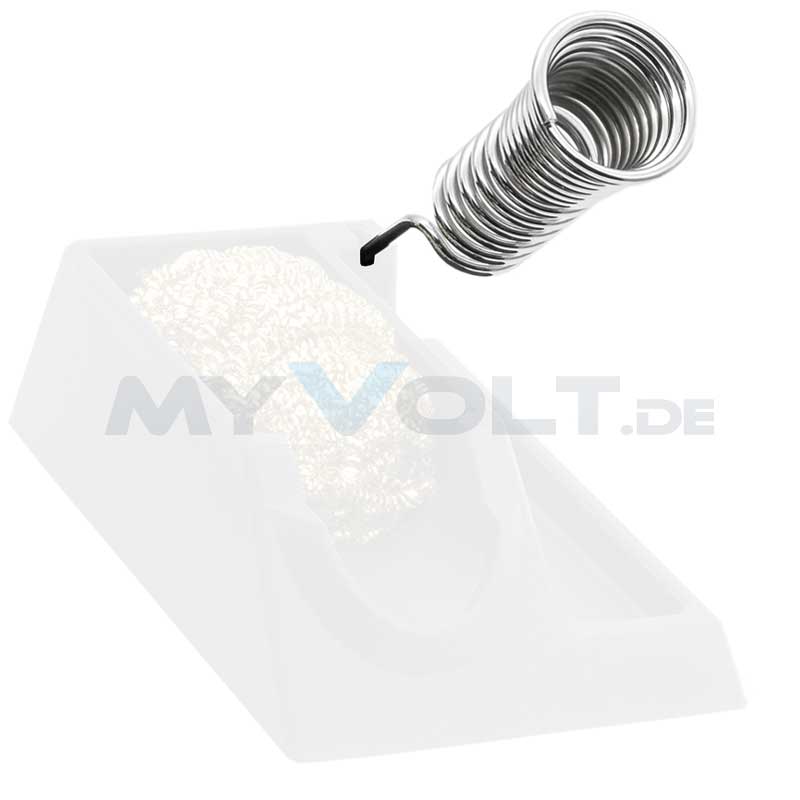 Speziell bei der Verwendung von bleifreien Loten kann es zu einer verstärkten Oxidbildung auf der Oberfläche der Lötspitze kommen. Diese Oxide müssen gezielt entfernt werden, da sie sehr schnell zu einer schwarzen unbenetzbaren Trennschicht führen. Für die Reinigung der Lötspitze kommt eine spezielle Spiralwolle (85% Bronze und 15% Stahl) zum Einsatz. Die Reinigung erfolgt durch Abstreifen oder Drehen der Lötspitze in der Spiralwolle. Nach der Feinreinigung ist weiterhin eine dünne Restlotschicht vorhanden, welche eine sofortige Oxidation der Lötspitze verhindert. Zum besseren Halt ist der Tischständer mit einem Gummisockel versehen.