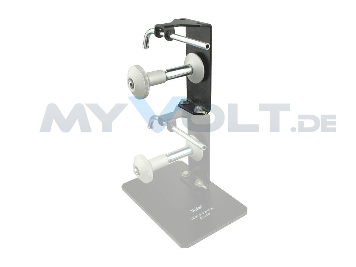 Praktische Löthilfe zum Abrollen von Lötzinnspulen bis 1000g. Der Aufbauwinkel dient zur Erweiterung des Weller Lötzinnabroller SD-1000.