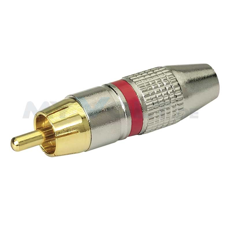 1x vergoldeter Cinchstecker mit roter oder schwarzer Markierung