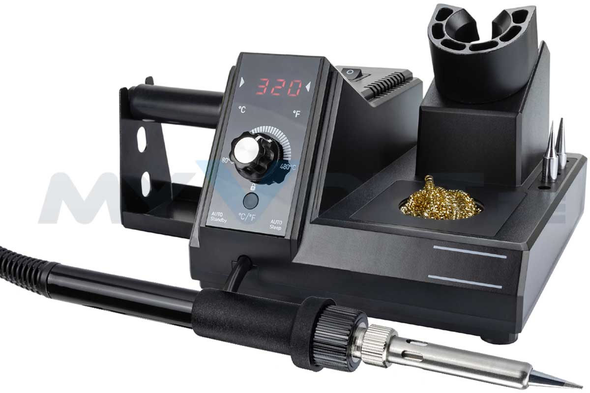 Regelbare Lötstation mit LED-Anzeige für den semiprofessionellen Einsatz. Die Temperatur kann mittels Drehregler von 80 °C bis 480 °C eingestellt werden. Die Lötspitzen sind schnell und problemlos ohne Werkzeug austauschbar.