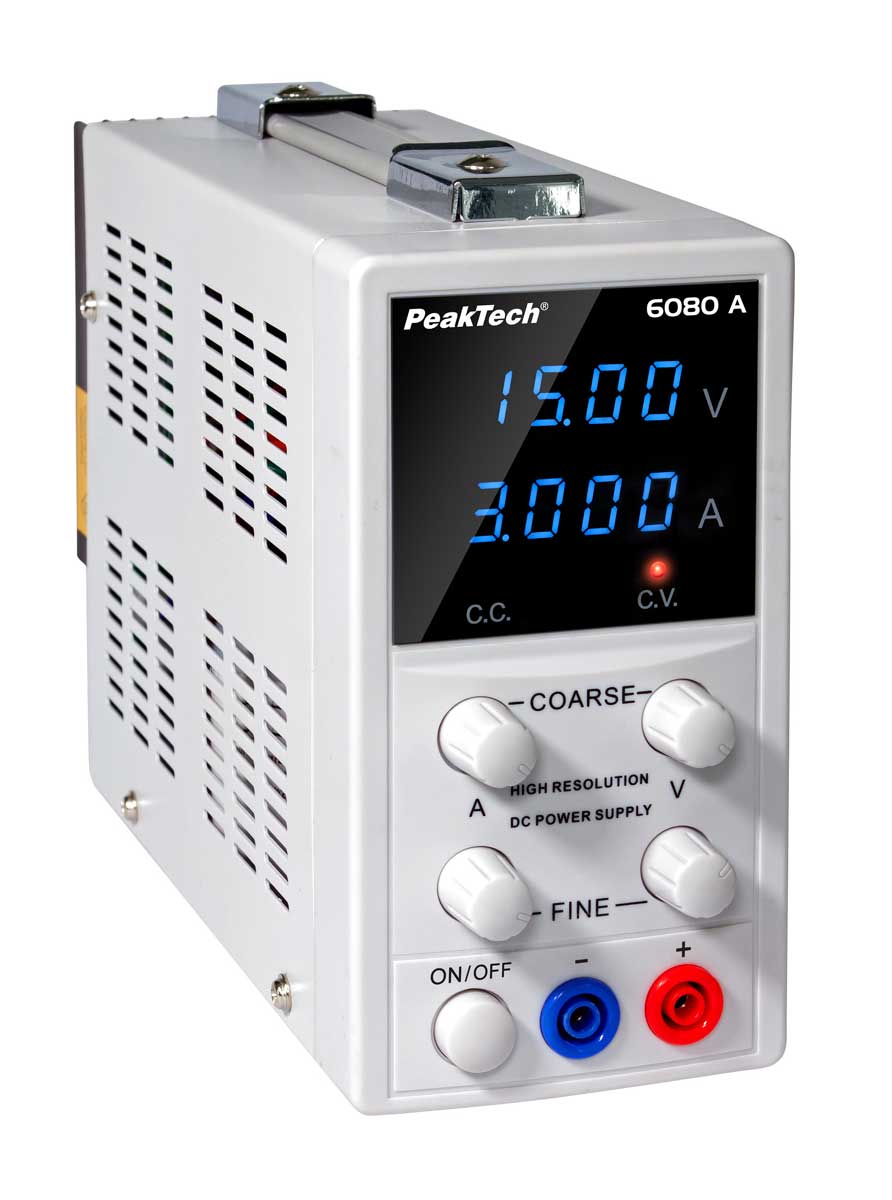 Das PeakTech 6080-A ist ein linear geregeltes Labornetzgerät mit passiver Kühlung und hochauflösender Digitalanzeige (1mA und 10mV). Dieses Modell verfügt zur präzisen Wahl der Strom- und Spannungseinstellungen über eine Grob-/ Feinregelung über separate Potentiometer.