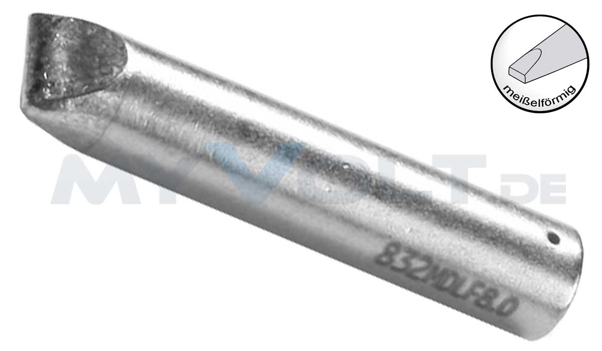 Dauerlötspitze ERSA 0832MDLF 8,0mm (beidseitig angeschrägt) als LF-ERSADUR-Ausführung. Diese Lötspitze ist passend für folgende Lötgeräte: