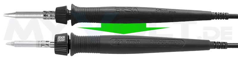 Es besteht die Möglichkeit, die ERSA i-CON Pico (0IC1300) mit dem neuen i-TOOL Pico MK2 (0135CDK) zu betreiben. ERSA bietet hierzu ein entsprechendes Upgrade-Kit an. Dieses Kit beinhaltet den Lötkolben i-TOOL PICO MK2 mit der neuen Tip´n´Turn Technologie, eine 1,6mm Lötspitze 0142CDLF16 sowie eine passende Lötkolbenhalterung (Feder), die im Austausch am alten Ablageständer 0A53 angebracht werden kann.