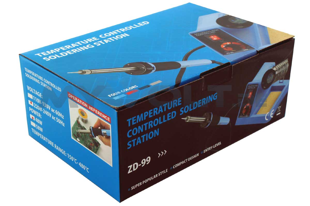 Regelbare Lötstation ZD-99 für den semiprofessionellen Einsatz. Die Temperatur kann mittels Drehregler stufenlos von 150 °C bis 520 °C eingestellt werden. Die Leistung beträgt je nach Temperatureinstellung 20-58 Watt. Die Lötspitzen sind schnell und problemlos ohne Werkzeug austauschbar. Die Lieferung erfolgt selbstverständlich inklusive Lötkolben mit passender Lötspitze (1,2 mm), thermogeschützter Außenlage und Schwammkissen.